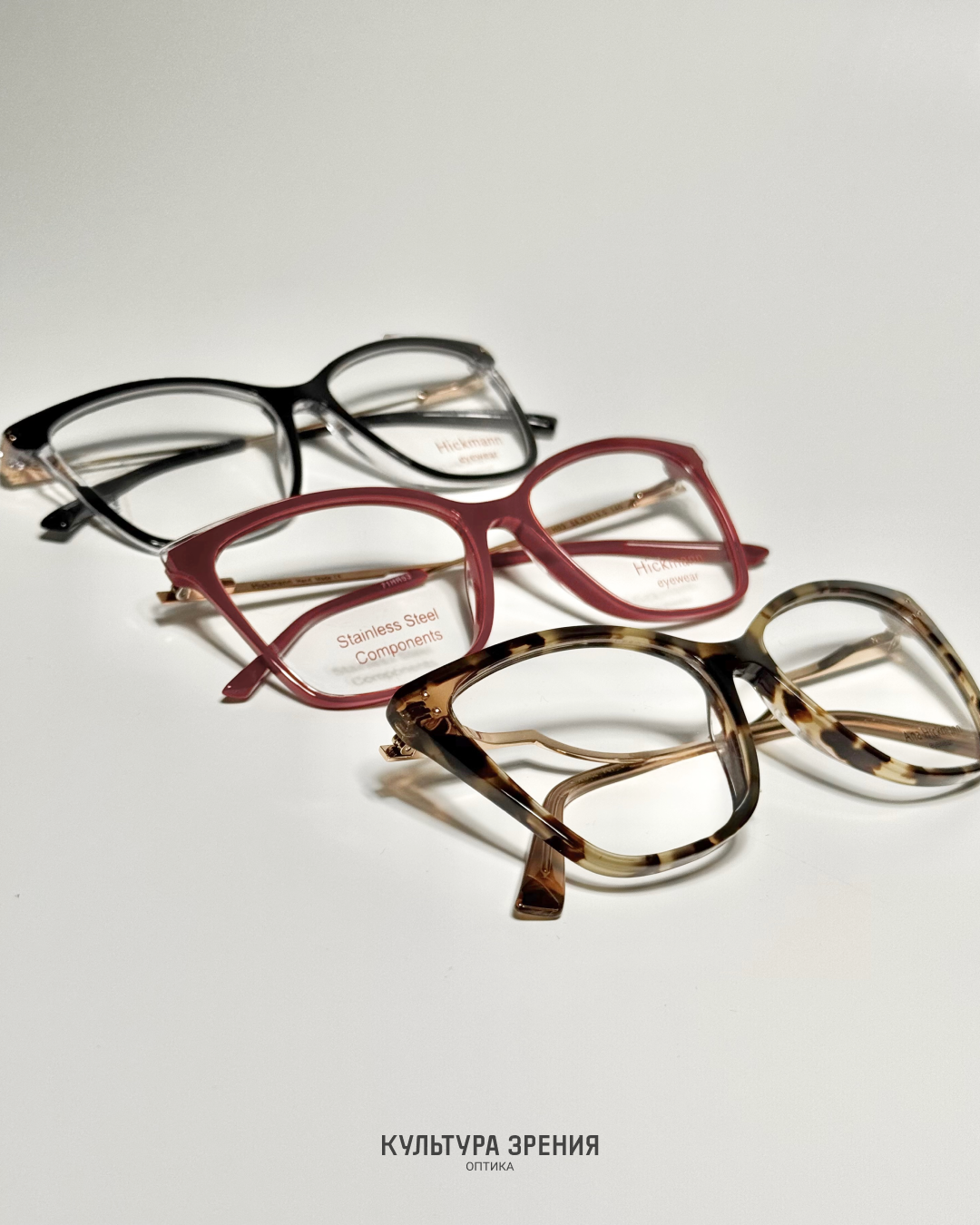 В сети оптик «Культура зрения» представлены солнцезащитные очки Hickmann и оправы для медицинских очков. Универсальность дизайна и доступность цены позволяют каждой женщине найти свою идеальную пару. Очки Ana Hickmann защищают глаза, подчеркивают вашу индивидуальность, оставаясь верными своим основным принципам: качеству, стилю и комфорту.